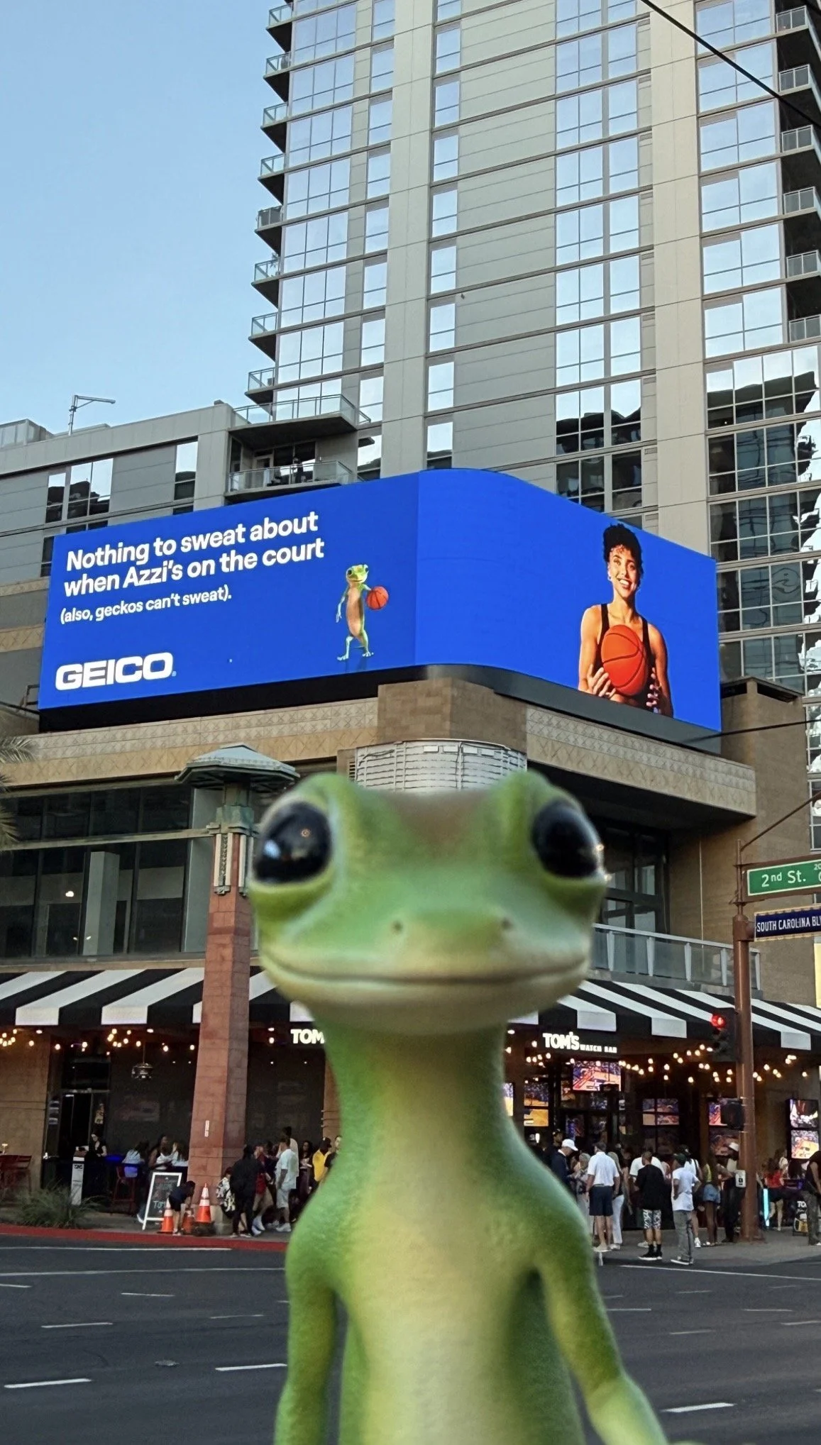 For the Sweet 16, the Gecko hit the road and headed to Fort Worth to support Azzi in-person.